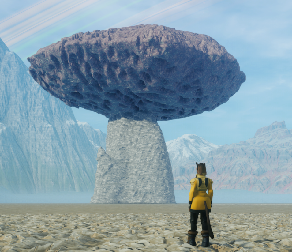 For fun, let’s grab that last image of the mushroom rock and see what we can do with our tools to make some mushroom rocks and get them into the game! The image below will be our initial shape. It’s interesting for sure, but this is the limit of what most procedural generation tech would let us do.